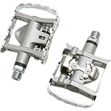 This two-sided pedal combines the convenience of a traditional pedal and the efficiency and performance of a clipless pedal. One side is a traditional flat platform, rideable with an ordinary noncleated shoe; the other has a cleat binding for the SPD (Shimano Pedaling Dynamics) integrated shoe and pedal system.Versatile two-sided pedal is great for the entry-level clipless cyclist Rideable with an SPD (2-Bolt) cleated shoe or noncleated shoe Adjustable cleat tension