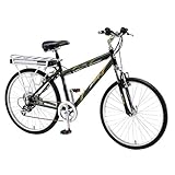 The EcoRide is powered by both the electric motor and good old-fashioned foot power, with an easy-to-use TAG-PAS pedal assist system helping propel you forward. The TAG-PAS system allows you to power the bike without pedaling at all, or you can use your legs to significantly increase your range and vary your speed. As a result, you can get as much or as little exercise as you desire (in hilly terrain, pedaling may be required). The bike is also extremely comfortable, with a suspension fork, suspension seat post, and comfortable saddle to soak up the bumps. Plus, recharging the battery couldn't be easier. Just park and lock the bike and carry the battery pack indoors. Other features include wide comfort street tires, alloy linear pull brakes, and SRAM grip shifters.