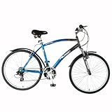 Boasting a laid-back 19-inch steel frame that delivers unmatched comfort, the Polaris Sportsman men's comfort cruiser is a great fit for both casual afternoon trips to the grocery store and in-city commutes. The bike offers such features as an ultra-dependable Shimano 21-speed drive train, Shimano twist shifters for easy and accurate gear changes, and a front suspension system that guarantees a smooth ride. The cushioned spring saddle and cruiser-style handlebars, meanwhile, will keep you in all-day comfort. Other details include Shimano derailleurs, alloy linear brakes, and aluminum wheels.