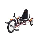 Tri-001RWith its innovative steering, low seat and adjustable frame, the Triton Three-Wheel Cruiser is bound to help you discover a new and fun form of bike riding. Triton's focus is on health and well-being, and incorporates features to promote hand-eye coordination, cardiovascular health, and arm and leg fitness into its line of three-wheelers. The Triton Three-Wheeler is also chain free, so you can live without the hassle of a greasy and problematic chain. Almost everyone of every size can enjoy this cruiser! Features: -Red steel coated frame -Recumbent tricycle -Adjustable frame fits most sizes -Unique steering system -Cushy seat -Caliper hand brake -Inflatable tires -Free wheel without chain -Versatile maneuverability -Smooth and exhilarating ride -Enhances hand-eye coordination and cardiovascular health -Reduces shoulder and arm stress -Safe and durable -For ages 5 and up -Includes a safety flag -Easy assembly Specifications: -Single speed -Seat sits 10'' above ground -16'' front wheel -12'' rear wheel -Maximum weight support: 220 lbs -Height capacity: 3' to 5'8'' -54 1/2'' High with flag